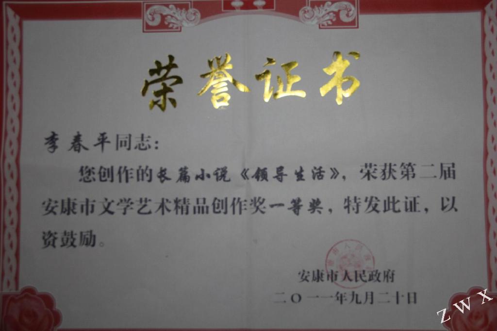 李春平获安康市文艺精品创作一等奖