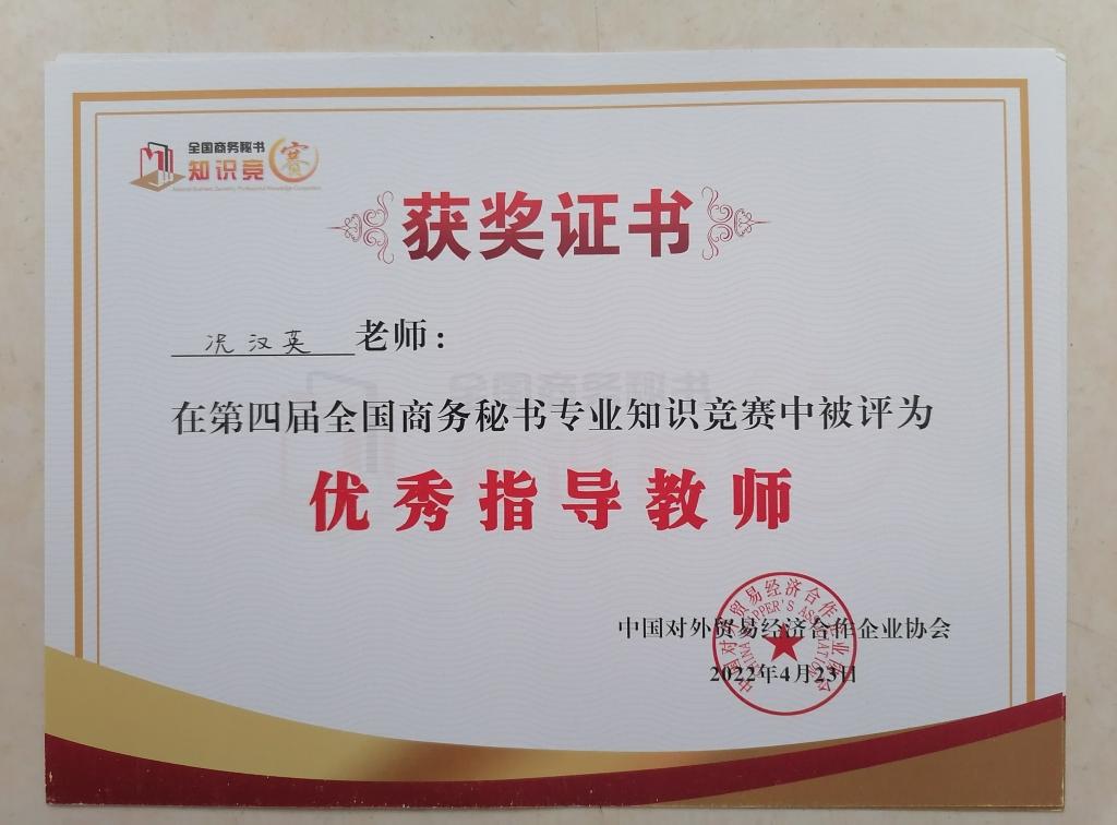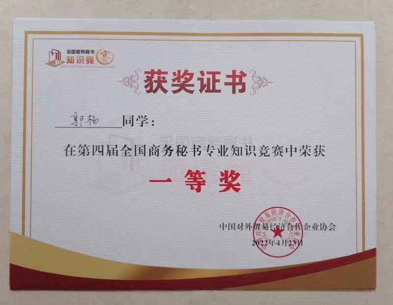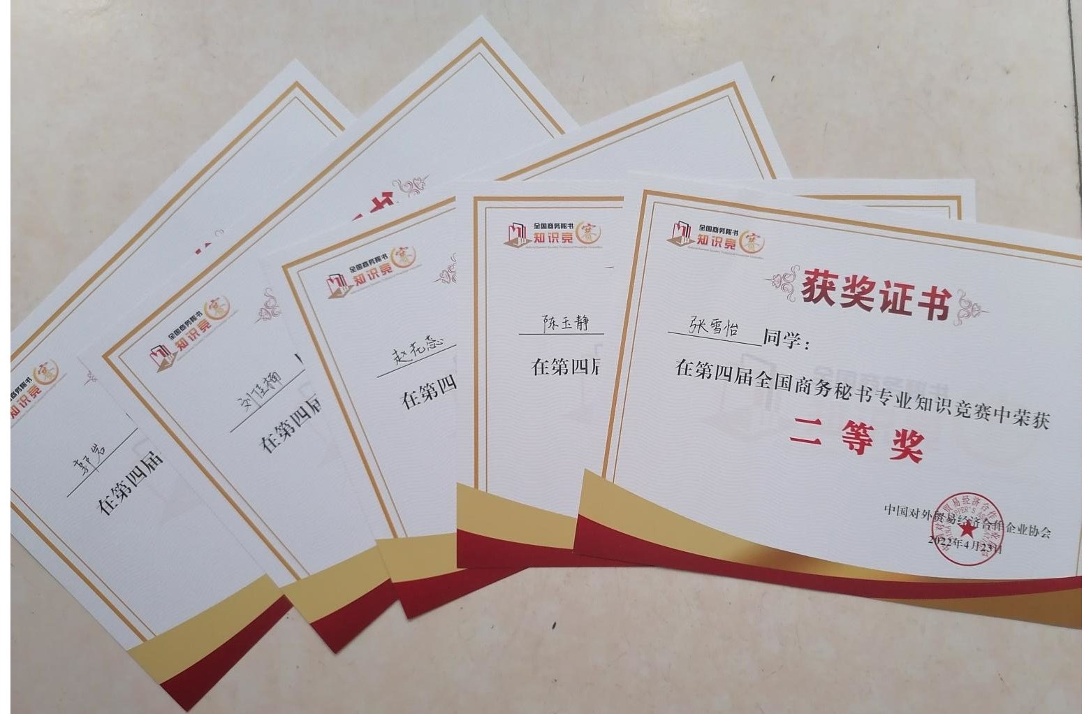 2022年4月23日,koko官网秘书学专业学生参加了“第四届全国商务秘书专业知识竞赛”,再创佳绩。郭杨同学获竞赛一等奖,张雪怡、陈玉静、赵花蕊、刘佳楠、郭岩5名同学获竞赛二等奖,佘海茹、唐磊、赵龙洋、杨豪苗等17名同学获竞赛三等奖,耿世杰、王米娜等11名同学通过资格认定获“高级商务秘书证书,koko体育官网获竞赛“优秀组织奖”,况汉英老师获“优秀指导教师”。