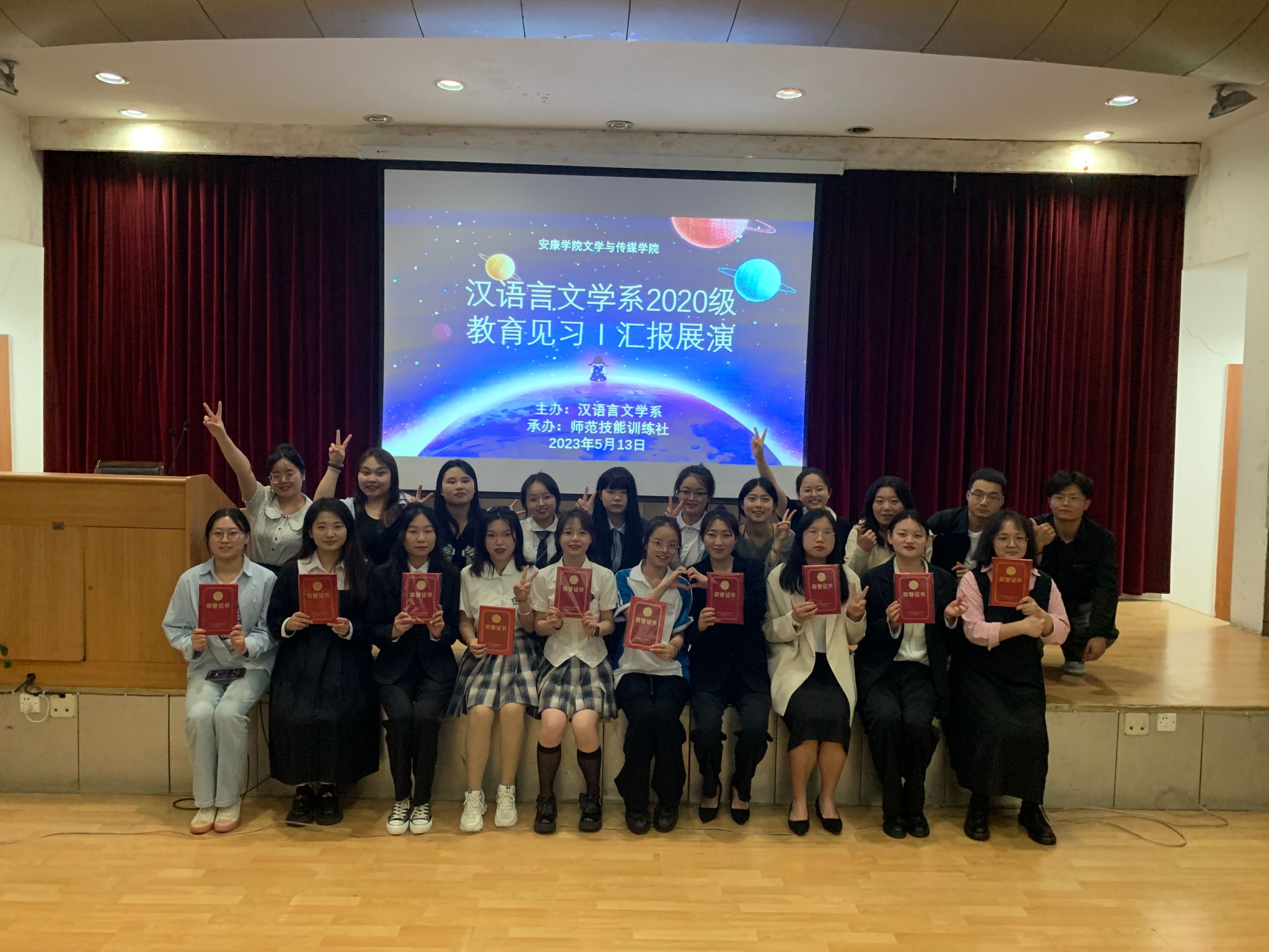 5月13日晚七点半,koko体育官网在江南校区一号楼六楼报告厅举行汉语言文学专业2020级教育见习1汇报展演。本次见习汇报展演由学科教学论任课教师张格瑄指导,师范技能训练社承办,汉语言文学专业2020级全体学生参加。