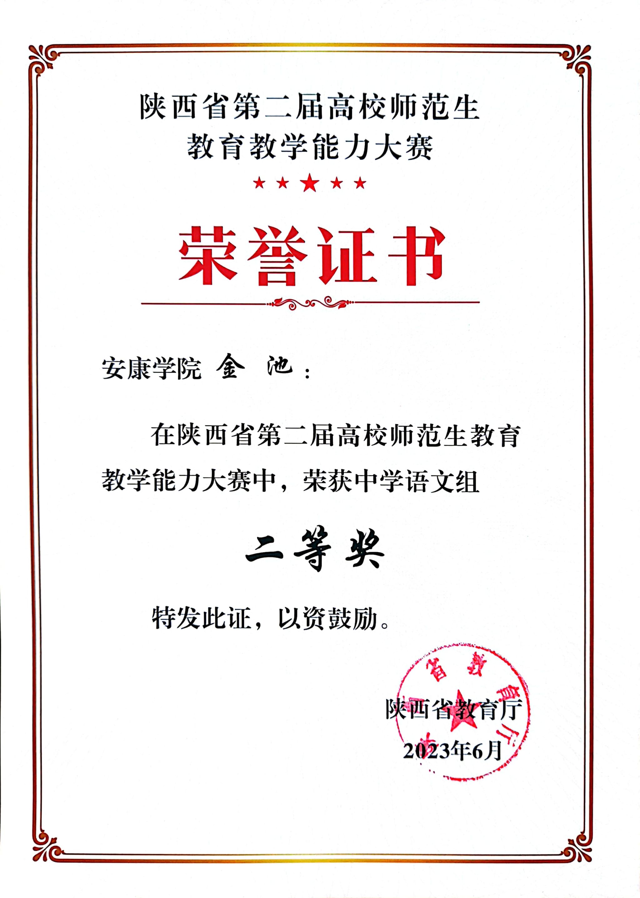 由陕西省教育厅主办,陕西师范大学承办,西安文理学院协办的“振兴师范 奠基良师”陕西省第二届高校师范生教育教学能力大赛于5月22日落下帷幕,koko官网汉语言文学专业2020级张蓉、金池两位同学代表koko体育官网参加中学语文组决赛并荣获一等奖、二等奖。
