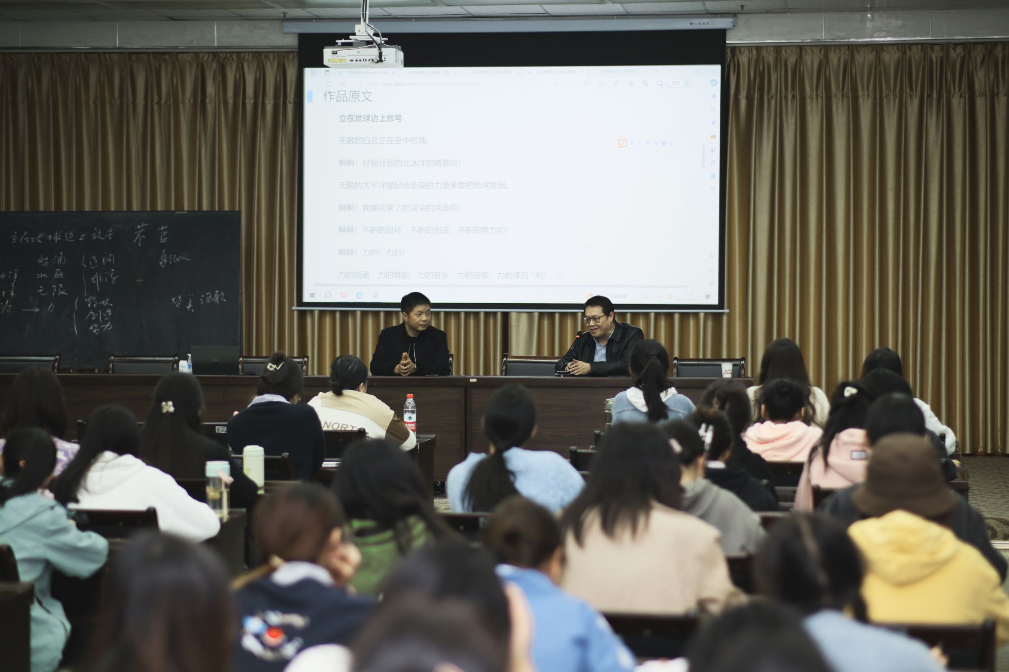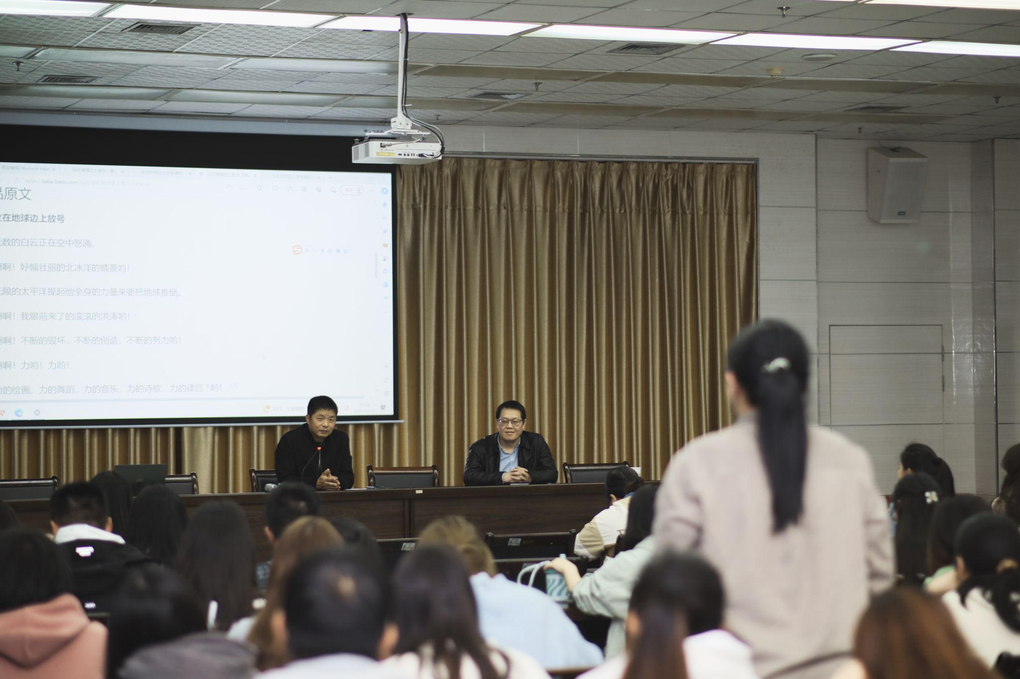 张铁军老师以《立在地球边上放号》一文为例,深入阐释了中学语文诗歌教学中存在的问题和应对策略。讲座后,同学们积极参与互动,就中学语文教学中的一些疑难问题与张老师进行了深入沟通和交流。