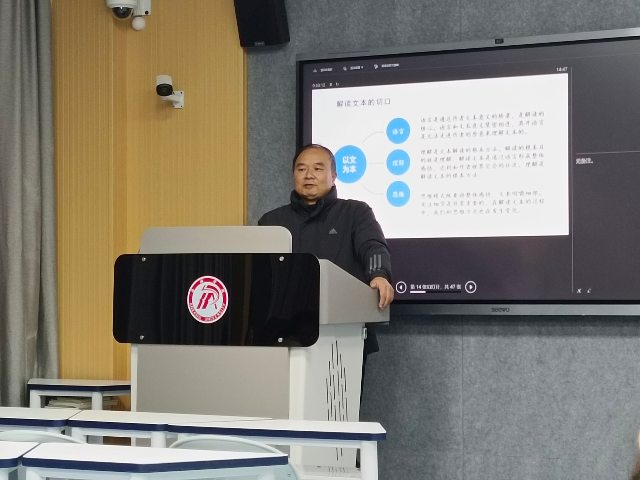 11月30日下午,在1号楼1405教室,koko体育官网邀请李玉恒老师为汉语言文学专业学生做了主题为“初中语文阅读教学文本解读面面观”的学术讲座。