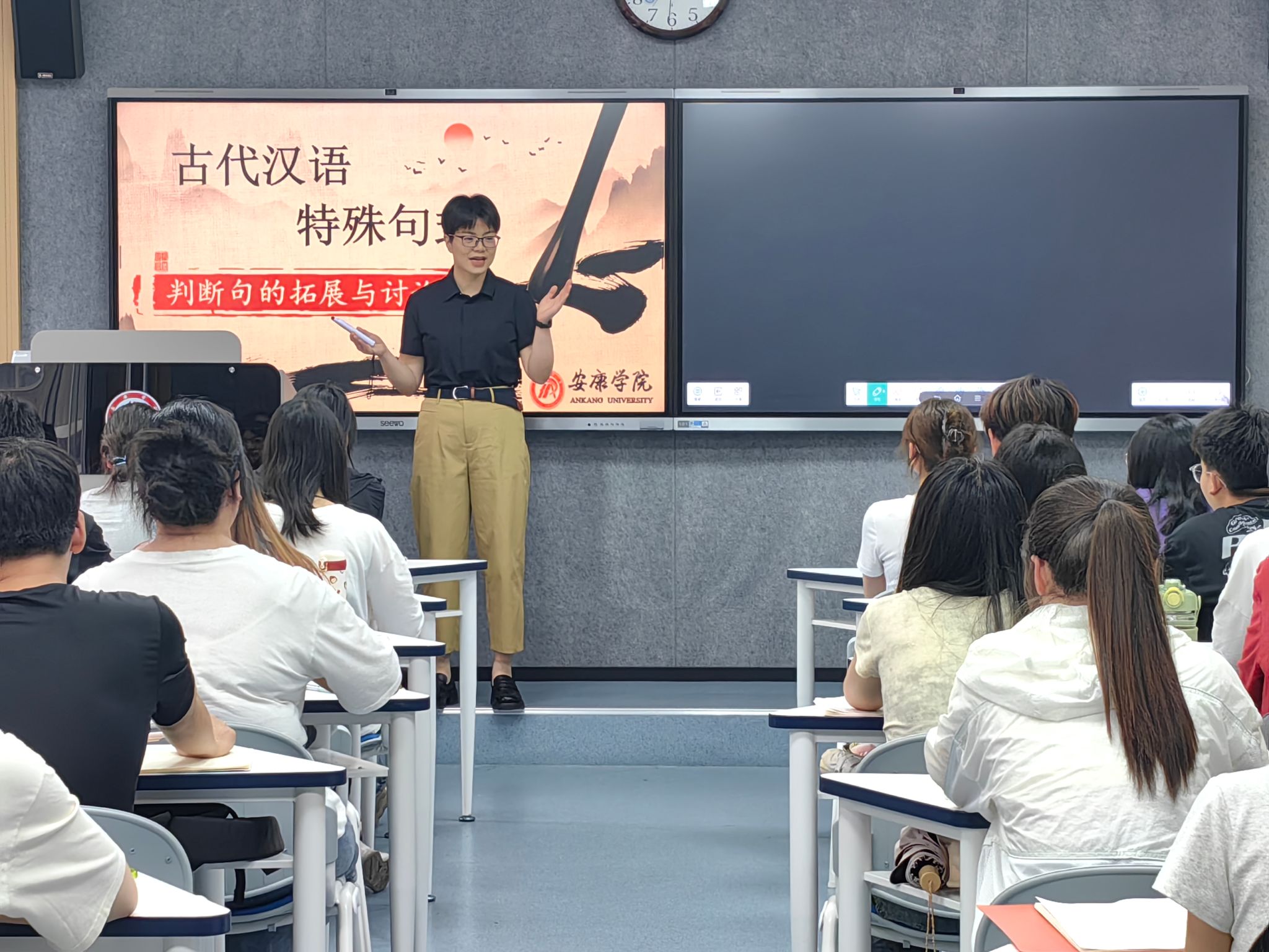 活动第一环节是教学示范课观摩教师们在1305教室观摩了由周海霞老师主讲的《古代汉语》课程。周老师运用超星智慧教学APP结合课前学生在线自学情况,课上完成了“古代汉语特殊句式:判断句的拓展与训练”的讲授。教学过程环节完整合理、知识容量大、案例丰富学生参与度高,教学效果