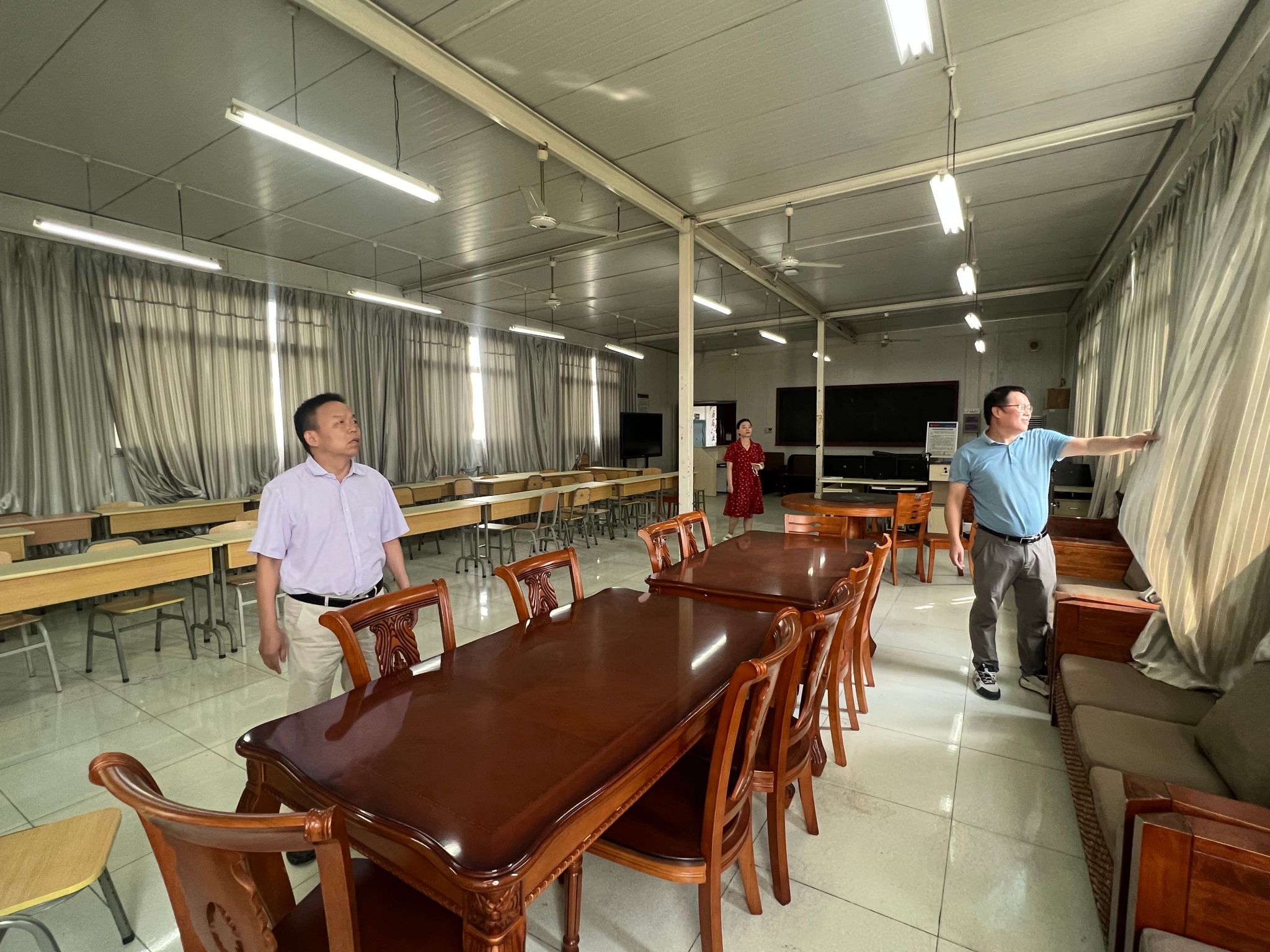 在检查过程中,学院领导详细查看了计算机、服务器等设备的电源线路连接和运行情况,以及门窗的关闭和室内卫生状况,特别关注了电缆的老化和设备负载问题,强调了安全用电的重要性,要求实训室管理员及时更换存在隐患的线路,确保机房用电安全。
