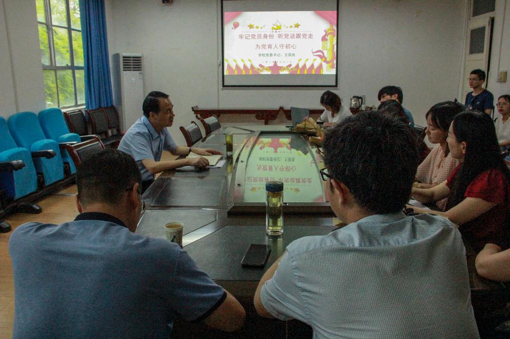 2020年7月1日下午,学校党委书记王国良在2307会议室为koko体育官网教工第一、第二党支部讲授题为《牢记党员身份听党话跟党走为党育人守初心》的党课。