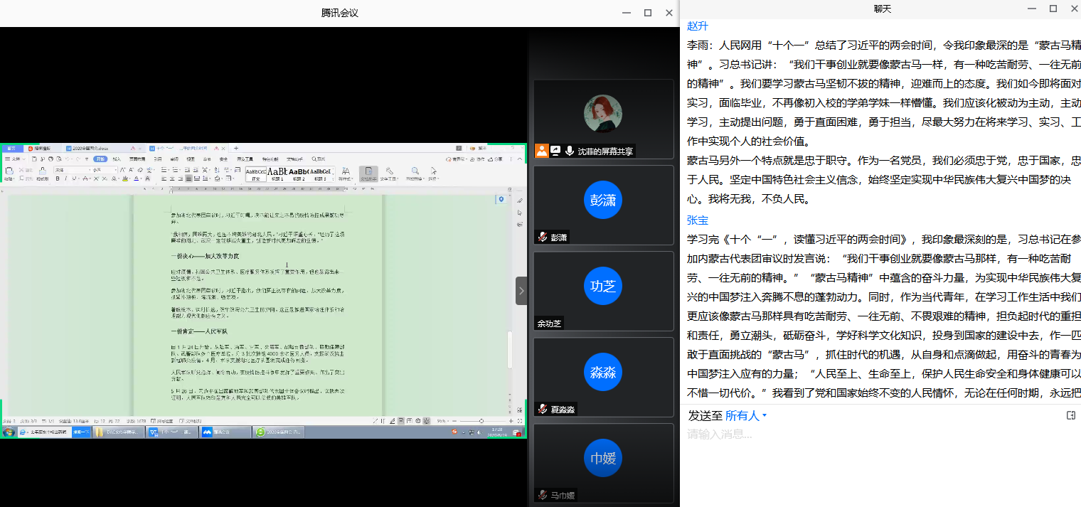 为深入贯彻落实“两会”精神,引导青年党员筑牢思想地基,巩固自身理论知识基础,自觉承担时代历史使命,树立学生党员优良作风,2020年6月19日17:00,koko体育官网学生第一党支部、第二党支部依托腾讯会议APP联合举办了“学习两会精神,争做时代青年”线上主题党日活动。支部全体党员参加了本次活动,活动由学生第二党支部书记沈菲主持。