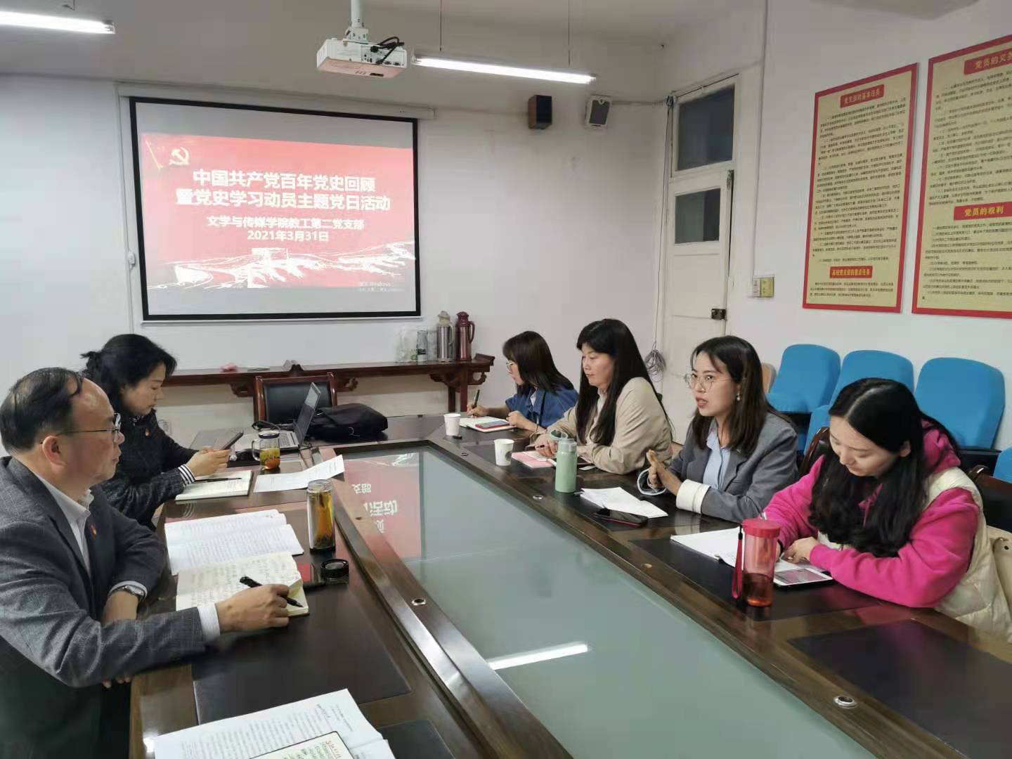 会上,支部书记谭诗民领学了习近平在党史学习教育动员大会上的重要讲话。重温了共产党艰难发展的历程,传达了党史学习的目标要求。与会党员纷纷表示,开展党史学习教育意义重大,作为教师要不断结合教学和科研实际,将学习教育融入日常教学工作与课程思政中,发挥党员教师带头模范作用。