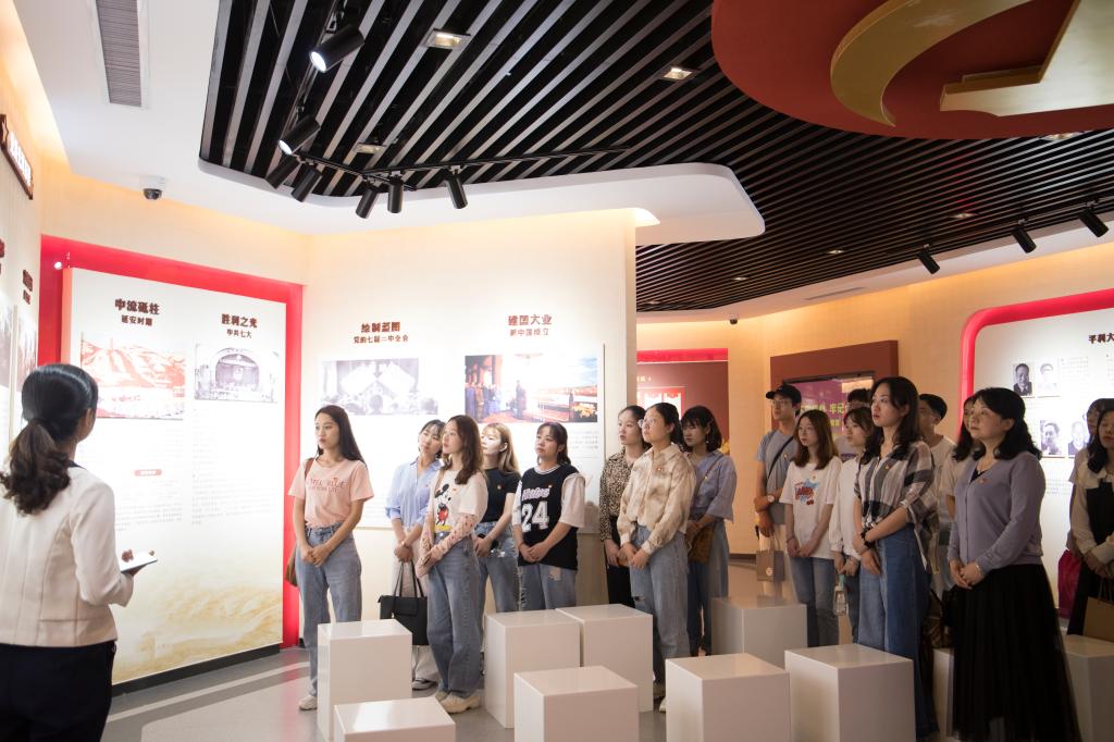 上午8:30,学生党员在学校2号教学楼集中,学生第二党支部书记薛涛带领大家参观了koko体育官网党史教育展板。