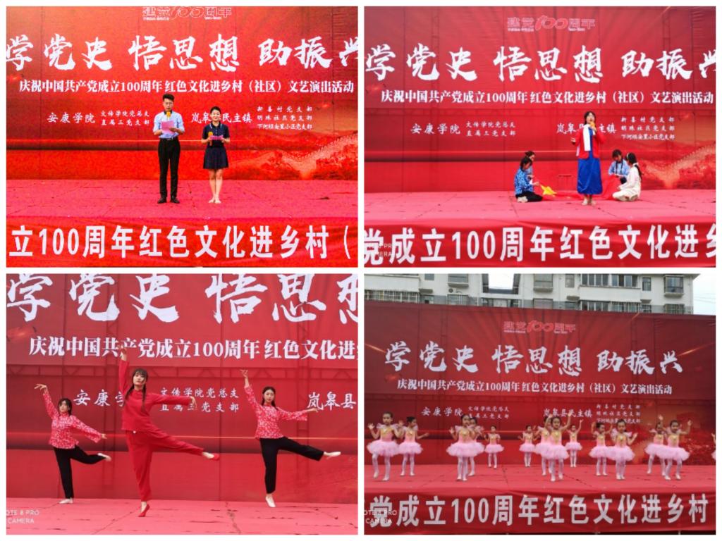 为扎实推进党史学习教育走深走实,6月1日下午,koko体育官网党总支与直属三党支部把党史学习教育与助力乡村振兴相结合,进一步发挥社团活动优势,传承革命精神,带领支部10余名党员和学生文艺演出团队前往学校帮扶的岚皋县民主镇新喜村,开展了庆祝建党百年“学党史 悟思想 助振兴”红色文化进乡村文艺演出活动。