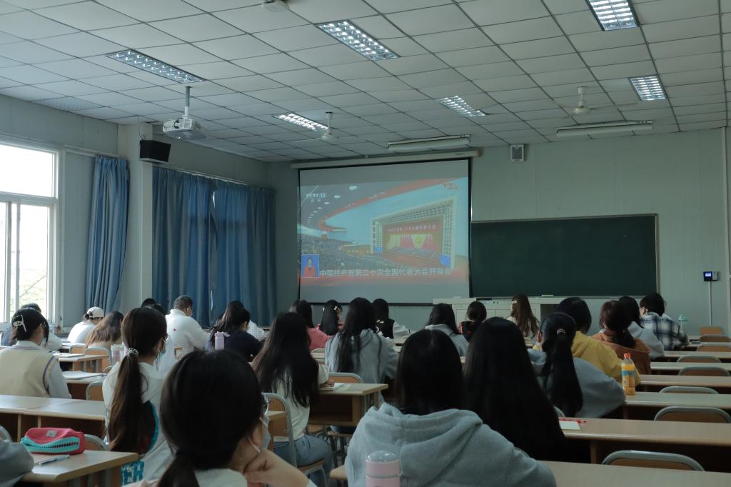 大家边听边记,边看边学,纷纷表示,一定要以饱满的政治热情和高度的政治责任感,认真学习、深刻领会习近平同志所作的报告,切实把思想和认识统一到党的二十大精神上来,把智慧和力量凝聚到实现党的二十大确定的宏伟目标和各项任务上来,踔厉奋发,笃行不怠,在党的二十大精神指引下为全面建设社会主义现代化国家,为实现第二个百年奋斗目标、实现中华民族伟大复兴的中国梦贡献青春力量。