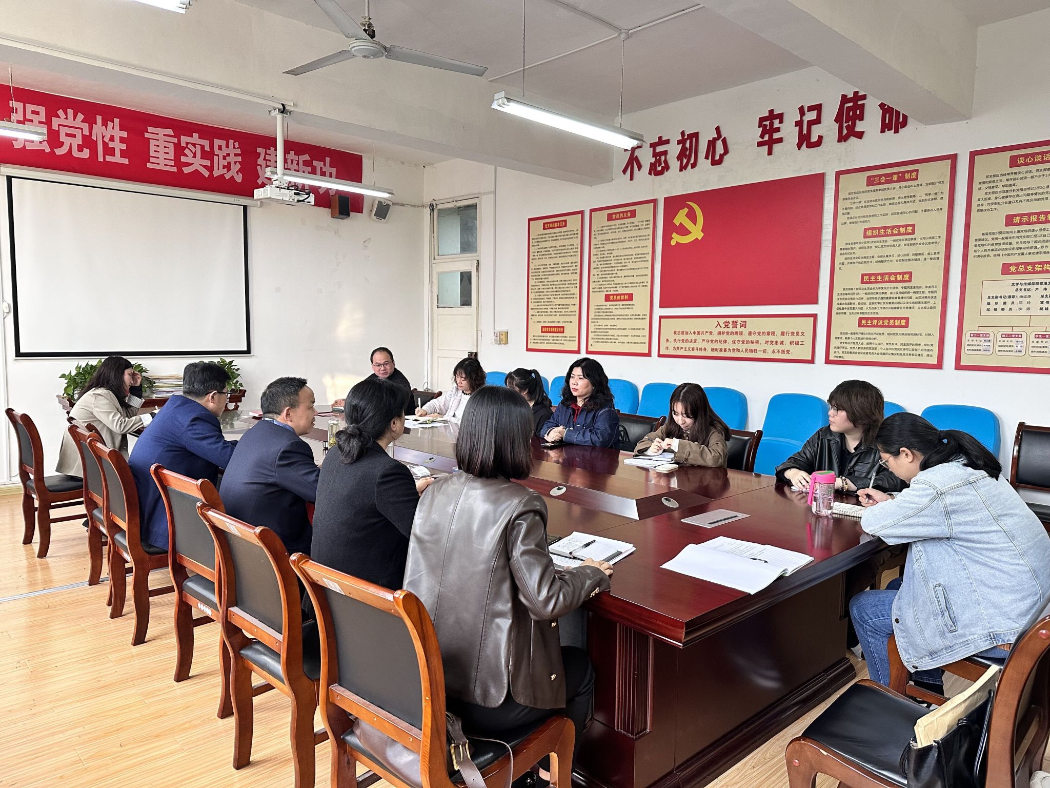 活动上,支部书记邸玲首先结合政治理论学习的“习近平文化思想”要点强调,网络与新媒体系的教师在教学过程中要贯彻习近平总书记对宣传思想文化工作的重要指示,指出支部建设工作中要充分发挥党员传帮带的重要作用。邸玲对网络新媒体系的三位新进教师何鲁艺、韩佳颖、彭雅伦参加本次政治理论学习和主题党日活动表示热烈欢迎。