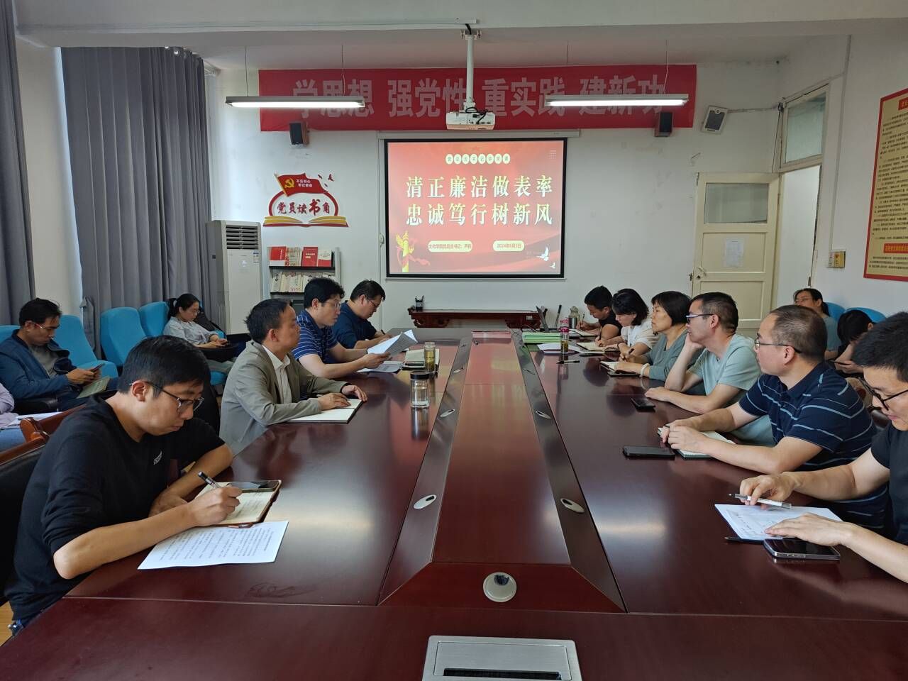 芦伟紧扣廉政这一主题,从廉洁自律,筑牢防腐防线;忠诚担当,铸就坚强党性;保持清风,推动实际工作等三个方面,深入浅出的讲授了廉政建设对于党的建设的重大意义。党课最后,芦伟结合学校党委党纪学习教育的安排部署和具体要求,以及学院将迎接本科教育教学审核评估工作的实际,就如何在推进工作中遵循党纪党规,做合格党员提出相关工作要求:在“深学深悟”中增强党性,使每一次党规党纪学习都成为修炼自我的过程,筑牢学纪、知纪、明纪、守纪的思想根基,增强拒腐防变的定力;用实际行动践行刀刃向内、自我革新的精神,全面对照党的六大纪律,时刻对照党纪这面镜子,主动把自己摆进去、把职责摆进去、把工作摆进去,做好政治体检、校正思想言行;坚持抓好以案促学,以反面典型案例为戒,借“前车之覆”,明“自身之鉴”。拉紧纪律上的“警戒线”,时时叩问初心使命、处处慎独慎微,做到不在“推杯换盏”中放纵,不在“小节无碍”的侥幸中越轨,不在“贪欲膨胀”中迷失自我;始终牢记“人民至上”的理念,秉持公道正派,坚持学生中心理念,用心用情用力服务师生,做到干干净净用权、教书育人,实实在在办事,在实干笃行中保持“守规矩”的定力,涵养高尚师德,做新时代教书育人大先生。
