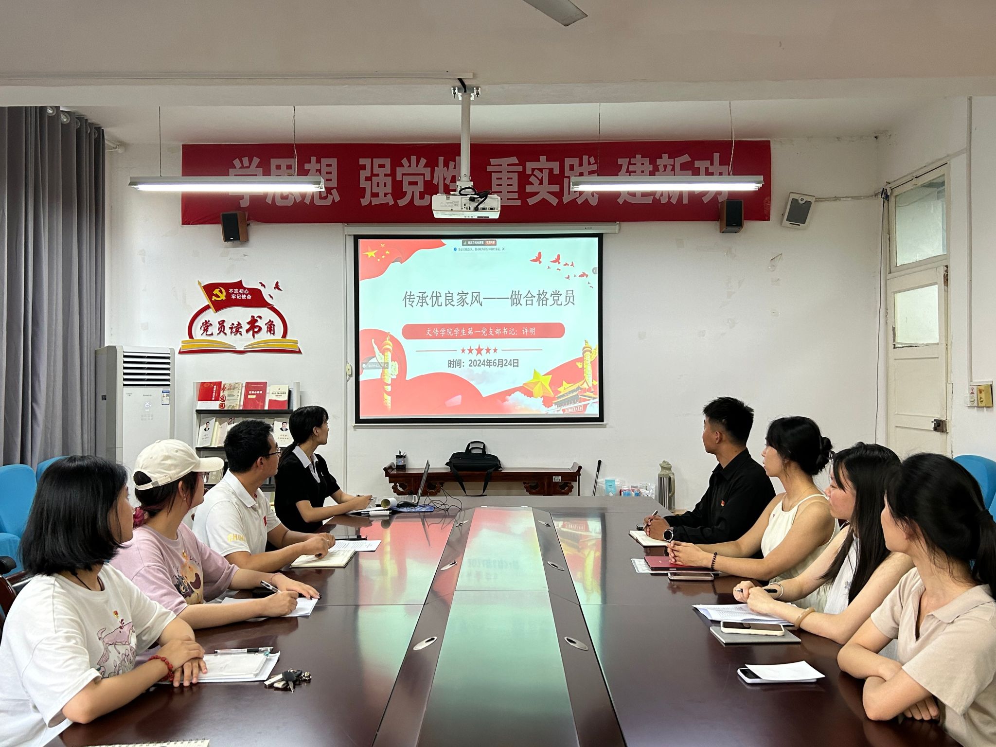 为深入开展党纪学习教育,传承党的优良传统和光荣作风,2024年6月24日下午,koko体育官网学生第一党支部书记以“传承优良家风家训,做合格党员为主题”为全体党员讲了一堂生动的党课。