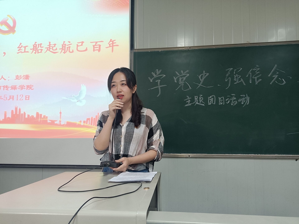 接着,彭潇老师生动讲解了题为《开天辟地震寰宇,红船精神已百年》的团课,本着“学史以明理,学史以诚信”讲解红船典故,引发学生思考。
