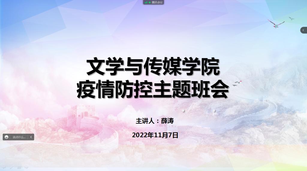 鉴于当前疫情呈现多点散发、局部爆发态势,为更好地引导学生配合做好当前学校疫情防控工作,确保师生生命安全、身体健康和校园稳定,筑牢学生安全防范思想防线,koko体育官网各年级于11月7日通过线上、线下结合的形式组织开展疫情防控安全教育专题班会,班会由各年级辅导员主持,全体学生参会聆听。