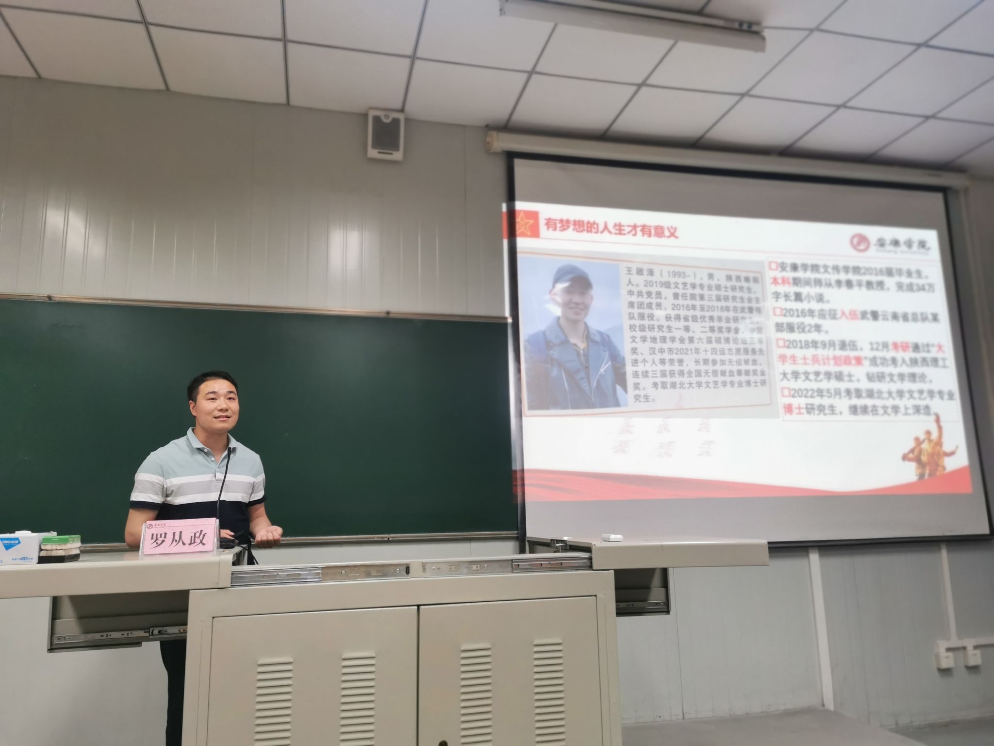 罗从政从应征入伍的流程、体检标准、大学生应征入伍的权益保障等方面为参会学生做了政策的解读,并鼓励大家积极参军入伍,报效祖国。
