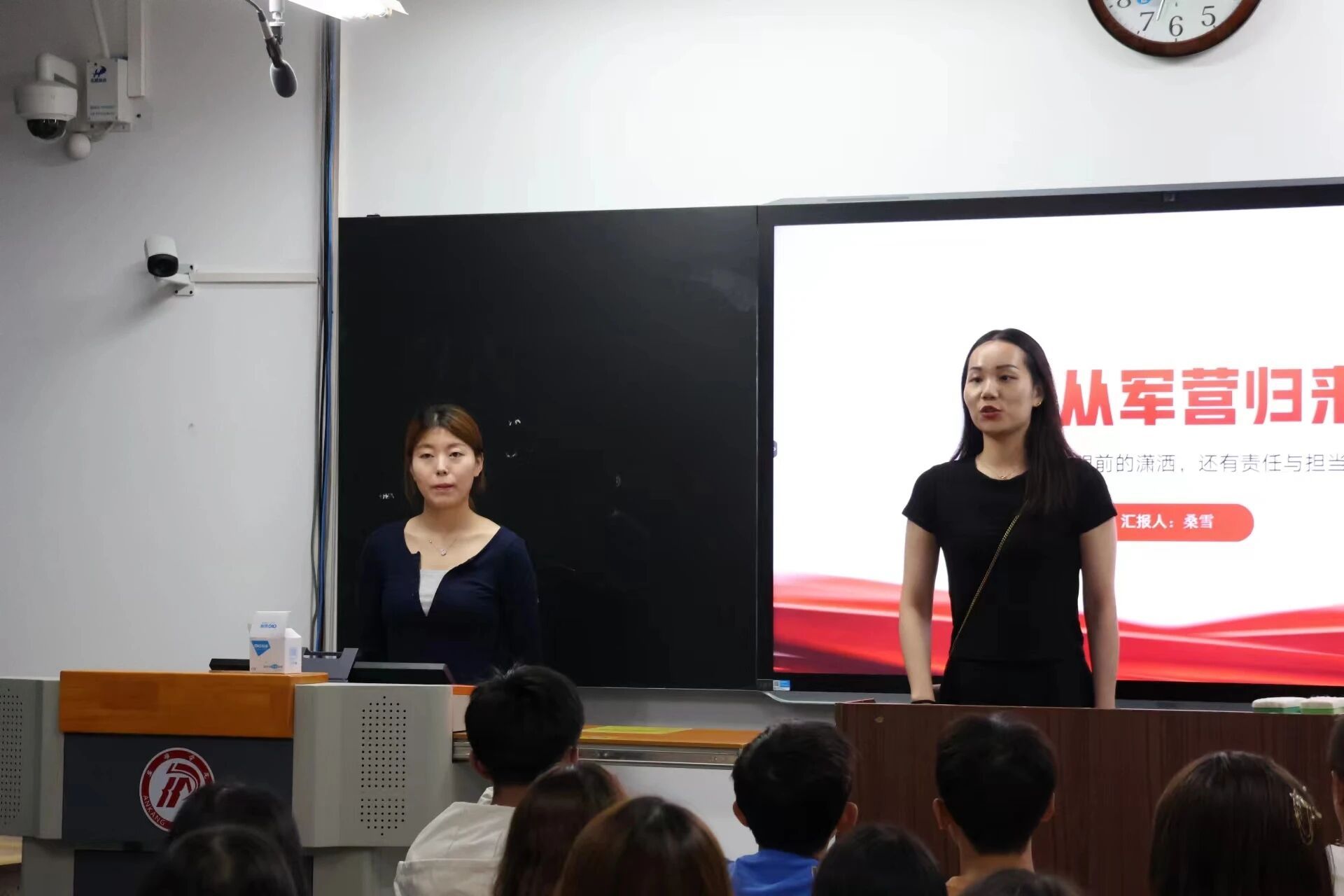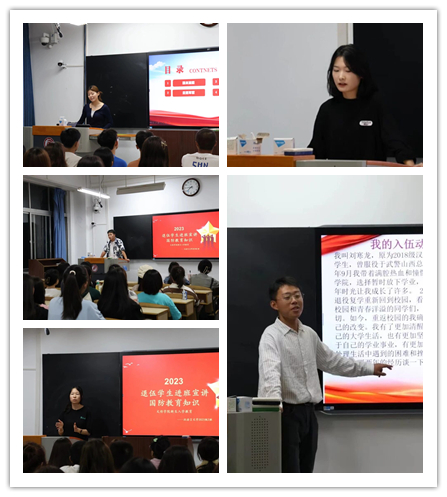 五位学生结合自身从军经历,宣讲国防安全知识。首先,他们劝诫同学们需保持清醒头脑,在应对形势危局中强化使命担当,明确国防义务与责任;提升思想认识,在复杂严峻的国防形势中力争上游,领悟国防内涵和精神。其次,要求同学们始终保持正确的政治站位,发扬吃苦耐劳、艰苦奋斗的精神。不断提升自身综合素质,练就过硬本领,坚定报国之心,做新时代的奋进者、搏击者、实干者,在社会主义建设浪潮中争当国家栋梁。最后,他们还对征兵入伍的基本条件、优惠政策、发展机遇等方面进行解读,鼓励大家参军入伍不留遗憾。