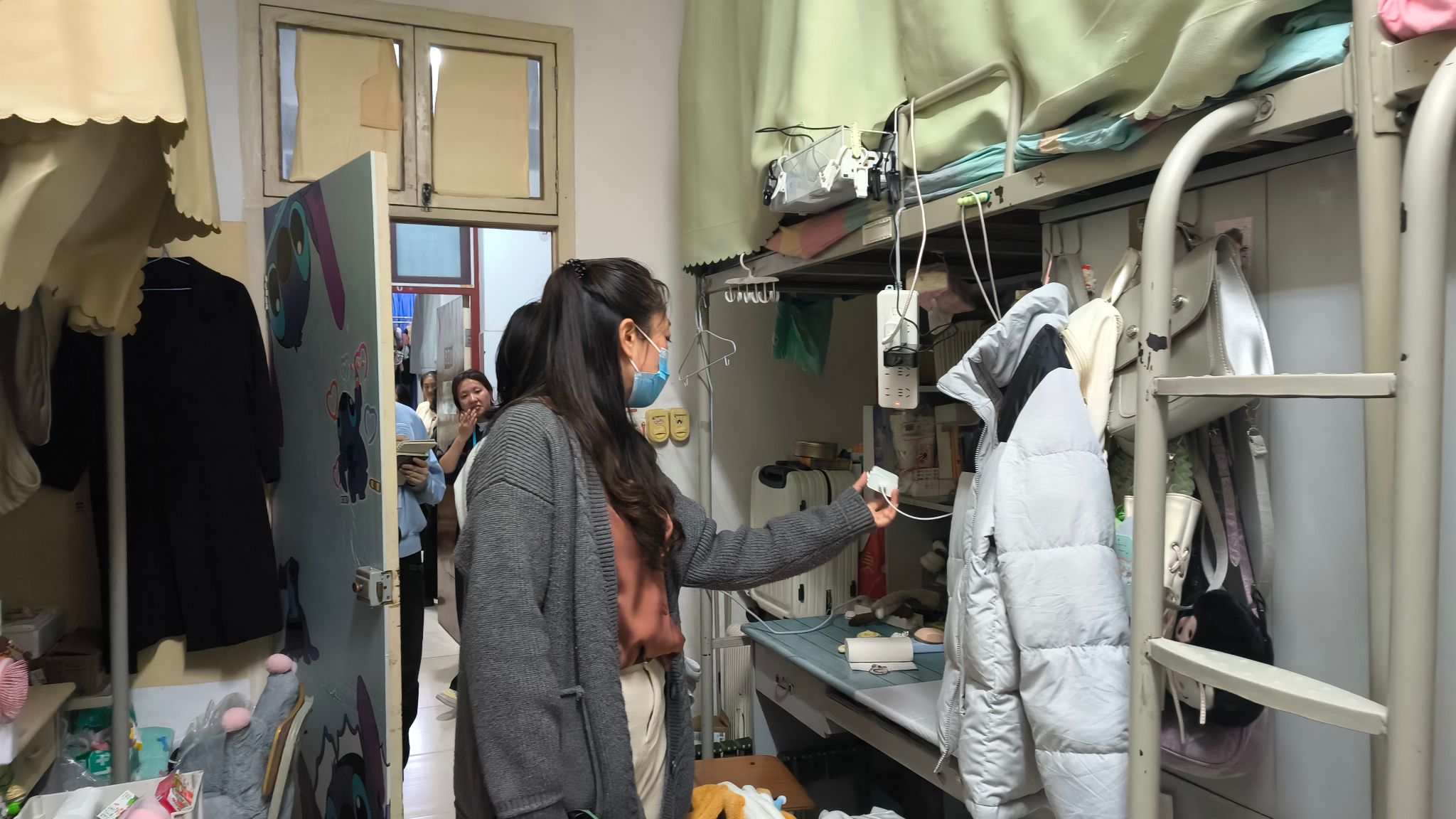 在检查过程中,老师们询问了解同学们的学习生活情况,希望同学们以审核评估为契机,以评促建,积极展现良好的精神风貌和宿舍文化。同学们对老师的关心表示感谢,并表示会积极配合学院做好宿舍卫生和安全工作。