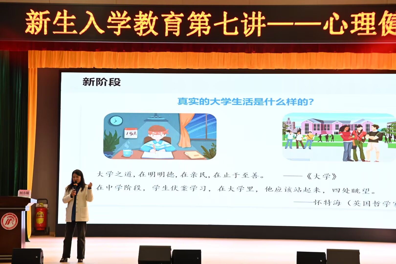 为进一步提升大学生心理健康素质,帮助同学们更好的应对挫折与挑战,11月20日下午,koko体育官网在江南校区大礼堂开展了大学生心理健康教育专题讲座,特邀大学生心理健康教育中心主任柯小敏主讲。2024级全体新生参加活动,讲座由辅导员刘言军主持。