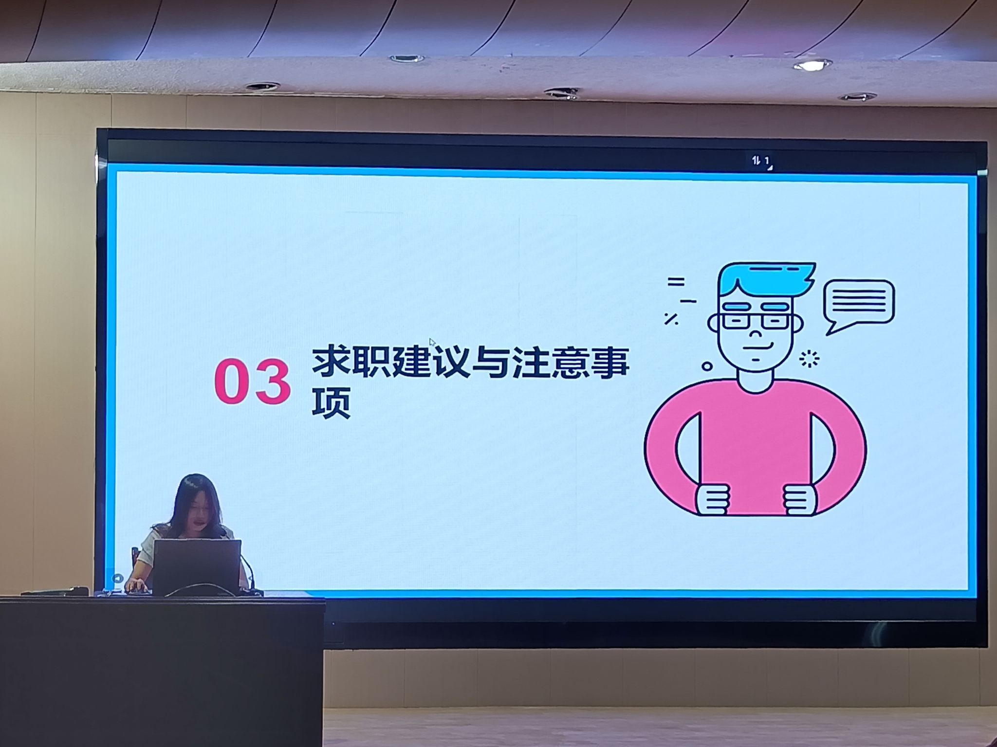 分享会上,三位2025届毕业生分享了各自从校园到职场的通关密码,传授了宝贵的就业经验。汉语言文学2021级3班聂菲艳鼓励同学们通过考研提升学历水平,缓解就业压力,分享了政治、英语、教育综合、作文等模块的备考技巧,同时分享了就业信息获取渠道,建议学弟学妹通过关注企业官方招聘公众号、校园就业信息网等权威渠道及时获取最新的招聘公告。秘书学2021级1班陈玉静从求职历程和心得、万唯原创公司入职体验、求职建议与注意事项等方面展开讲解,她提醒同学们要把控简历制作的细节,展现专业形象,选择官方招聘渠道,提前了解企业文化,充分准备面试。网络与新媒体2021级1班余星红分享了如何运用就业信息平台获取就业信息,并对“网申—笔试—面试—体检—签约”的完整招聘流程进行了详细解读。谈及关键的笔试与面试环节,她着重提醒同学们需扎实专业基础、提升语言表达能力,同时注重保持良好身体状态,全方位做好试讲准备,以最佳状态迎接求职挑战。