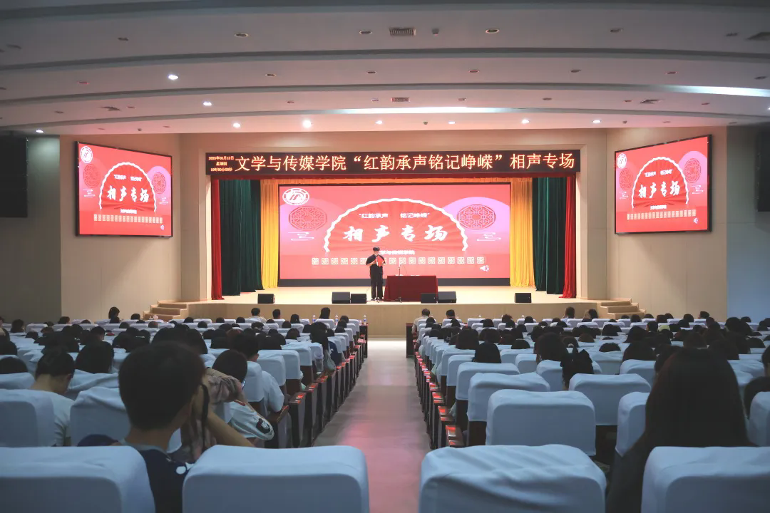 为传承红色基因,切实弘扬中华优秀传统文化,5月15日晚,koko体育官网于大礼堂举办了“红韵承声 铭记峥嵘”相声专场活动,特邀安康市曲艺家协会主席汪涛、校团委书记周云出席,koko官网党总支书记任森龙,全体辅导员及23、24级全体学生参加活动,活动由汉语言文学2024级1班李炫烨主持。