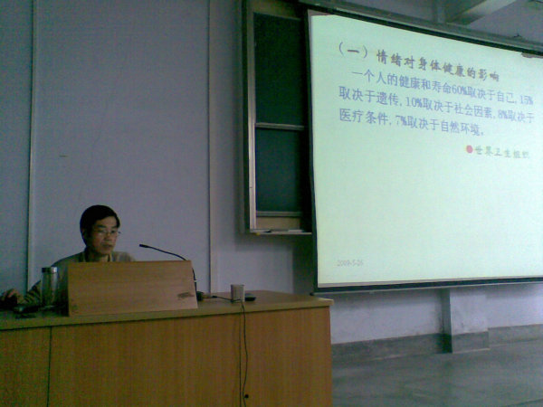5月26日晚 ,在一号楼1510教室教科系李?宁老师做了关于“心的体会”专题心理讲座。李?宁老师从情绪与身心健康,情绪的调节,积极情绪的培养等方面为同学们作了详细的讲解,李老师学识渊博,语言生动形象,讲解通俗易懂。中文系辅导员何媛组织中文系同学到场聆听了报告。