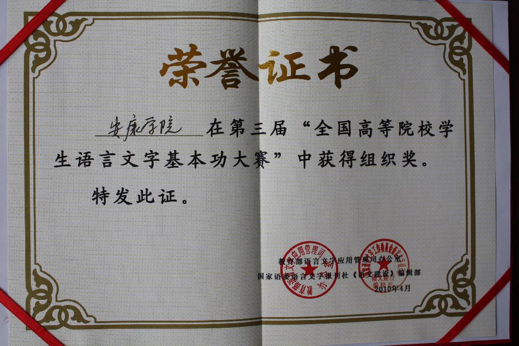导航痕迹 首页 > 新闻通知 > 学院新闻 > 正文 学院新闻 通知公告 中文系在“第三届全国高等院校学生语言文字基本功大赛”中再获佳绩 发布人: 发布日期:2010年05月10日 阅读次数: 中文系汉语言文学、语文教育、文秘专业07级、08级、09级共670名学生于2009年12月在赵桃老师的辅导、组织下,参加了由教育部、国家语委主办的第三届全国高等院校学生语言文字基本功大赛。 本届大赛全国有300多所院校的12万学生参加,koko官网中文系有81名学生获奖,其中一等奖17人,二等奖27人,三等奖37人;在参赛的300余所院校中,koko官网荣获组织奖。这是koko官网中文系继前两届大赛获得的又一次好成绩。