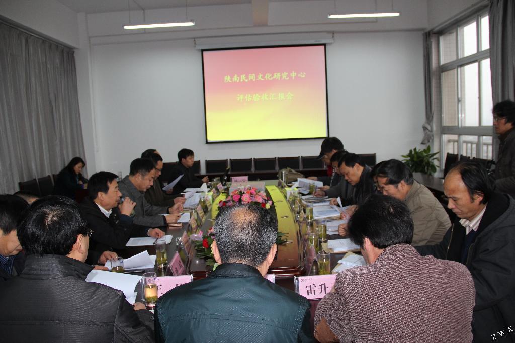 专家组对中心办公室、会议室、资料室、研究设施、近年研究成果进行现场考察、验证,一致认为陕南民间文化研究中心建设期内完成了建设计划中预定的各项目标、任务,验收通过。