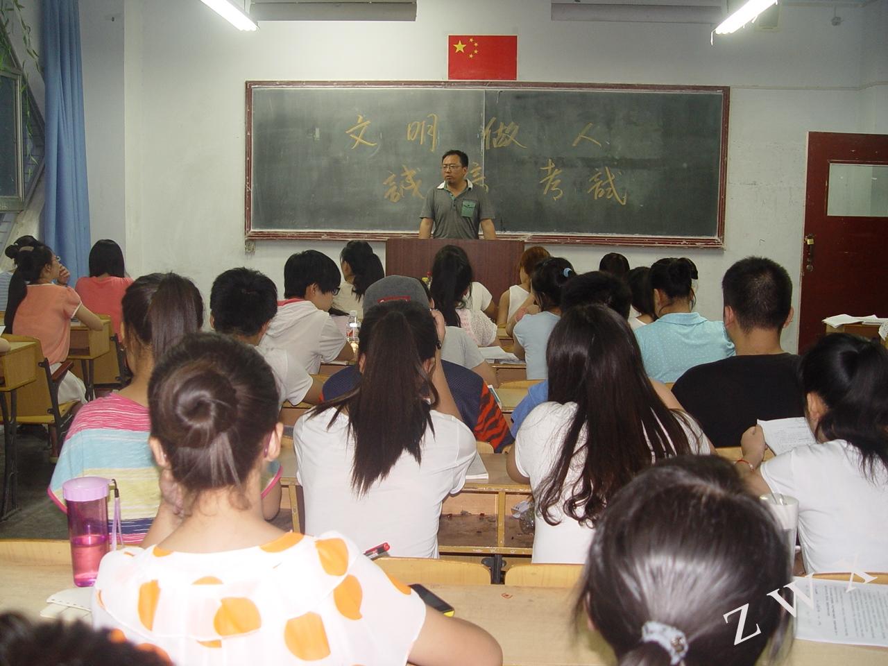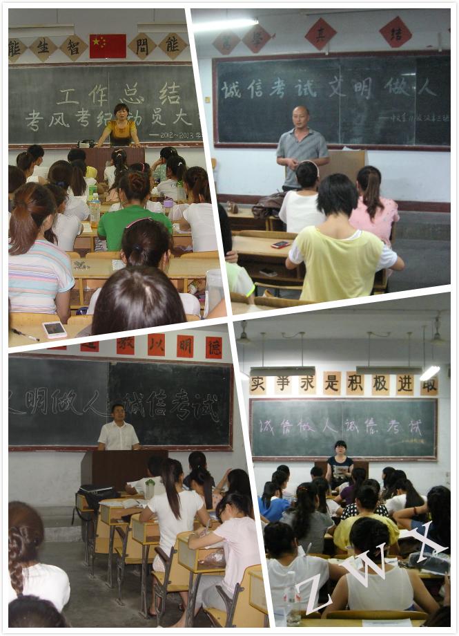 为端正考风强化考纪,我系于2013年7月4日晚,组织非毕业班学生在各班自习室举行了“考试诚信承诺书签字仪式”。
