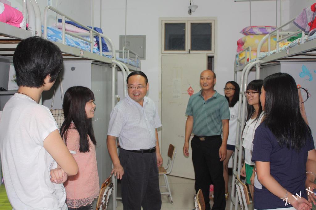 2014年9月2日晚,中文系党总支书记李岩、系主任戴承元、学工办主任郝礼军、团总支书记沈菲到江南校区学生公寓看望了2014级新生。