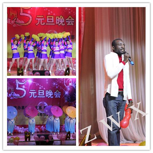 晚会在热闹、欢快的陕北民间歌舞中拉开帷幕。接着,优雅的华尔兹舞蹈、欢快的健美操、曼妙的古典舞蹈、劲爆的街舞轮滑、啦啦操次第登场。机关三支部余婕老师的一曲《知音》,引起观众对爱情的无限遐思;影视戏剧社的小品《退房》,再现了奋进的koko体育官网人浓浓的师生情;留学生倪士杰的新年祝福,表达了喀麦隆学生对中国的无限情怀;第五龙龙等人的诗歌朗诵《我的南方和北方》,激起了大家对伟大祖国的深深眷恋;“太极与双节棍”动与静的美妙组合,更是展示了中华武术的博大精深;史超凡、赵莎的英文歌舞,劲爆火辣;梁启超组合的自编歌曲,激情飞扬。整台晚会,高潮迭起,掌声、笑声、欢呼声不断,突出了“热闹祥和、青春激扬”的主题。