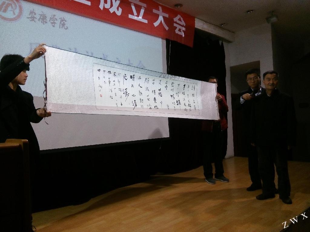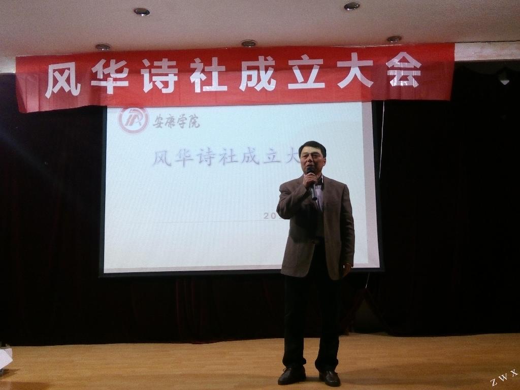 社团成立大会得到了学校、中文系的大力支持,也得到了安康市诗词协会的友情协助。与会的领导有:校党委副书记胡鸿晓,安康市文艺评论家协会名誉主席田尔斯老师,校团委副书记肖红香,中文系党总支书记李岩,中文系副主任梁卫华等。