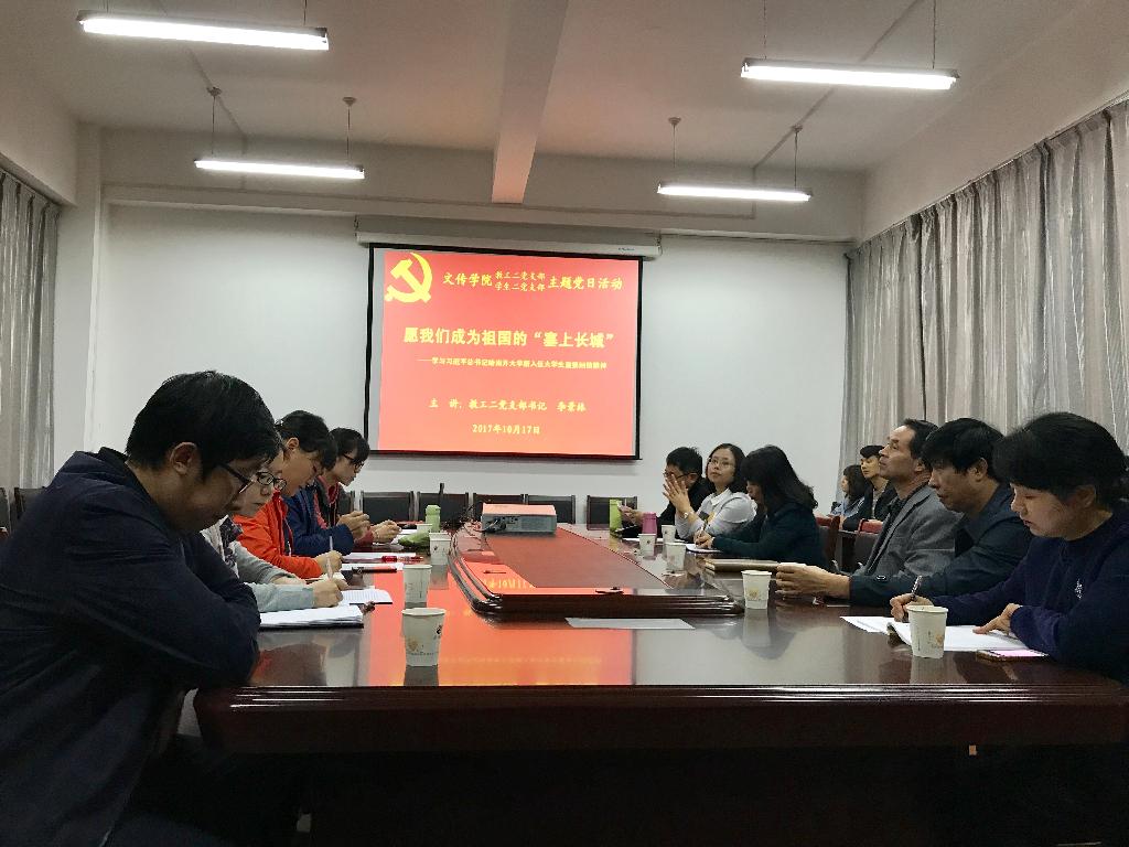 2017年10月17日,在中国共产党第十九次全国代表大会召开前夕,koko体育官网教工二党支部、学生二党支部党员同志与部分有志于参军入伍的青年学生齐聚一堂,开展题为“愿我们成为祖国的‘塞上长城’”的主题党日活动,重点学习贯彻习近平总书记给南开大学新入伍大学生重要回信精神。学校党委书记王国良以普通党员身份参加了本次主题党日活动,教工二党支部组织委员侯红艳主持会议。