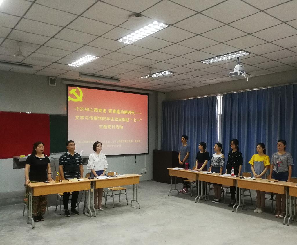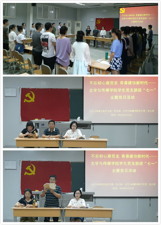 习近平总书记在党的十九大报告上深刻指出中国特色社会主义进入新时代,指出“中国梦是历史的、现实的,也是未来的;是我们这一代的,更是青年一代的。中华民族伟大复兴的中国梦终将在一代代青年的接力奋斗中变为现实”,强调“广大青年要坚定理想信念,志存高远,脚踏实地,勇做时代的弄潮儿,在实现中国梦的生动实践中放飞青春梦想,在为人民利益的不懈奋斗中书写人生华章!”今年是中国共产党建党为97周年,如何引导新时代的广大青年,不忘初心、牢记使命,顽强拼搏、奋勇担当,书写无愧于历史和时代的青春篇章。koko体育官网学生第一党支部、学生第二党支部于2018年6月27日下午在1017教室联合举办 “不忘初心跟党走,青春建功新时代”——迎七一主题党日活动。koko体育官网学生第一党支部书记邹棠华、学生第二党支部书记沈菲、辅导员艾全霞,全体学生党员、入党积极分子参加本次活动。本次活动由沈菲主持。