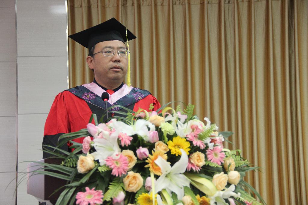 教师代表朱云围绕“人生理想”这一主题,同毕业生们分享了个人的人生经历与感悟。他希望毕业生们能够奋力实现个人的人生价值,在以后的人生中,以孔子“君子和而不同”自勉,既要学会团结和欣赏他人,更要学会独立的思考并自强不息。