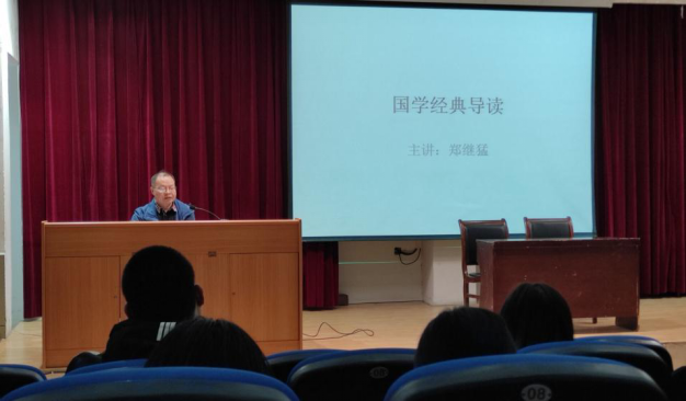在讲解相关国学经典的问题时,郑教授还使用“后生可畏,莫欺少年穷”等经典语句与身边的现实事例鼓励在座各位同学。同时向大家分享了他的励志故事。鼓励同学们不要看轻自己,而应该在四年中通过读书学习不断向上努力,四年可以使人产生质的变化,读书使人明智。