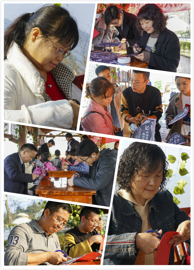 在蒋家坪,教职工们登上山顶,参观了茶园,了解了茶叶产业发展对推动农民增收和乡村振兴的重要作用;在马盘山上,教职工们围坐一起,koko官网有剪纸艺术特长学生梁少华一边介绍中华优秀传统剪纸艺术,一边指导老师们用剪刀在红色的纸张上剪出了“坚决跟党走”“不忘初心、牢记使命”等栩栩如生的作品,师生共同沉浸在剪纸艺术氛围中,收获了喜悦,凝聚了情感。