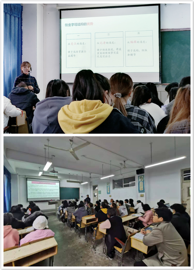 本次公开课观摩研讨会分两个阶段进行。第一阶段由秘书与新媒体系青年教师崔瑜和王薇薇分别在周一上午和周四下午进行公开课讲授,学院领导、系主任、学院教学督导、新媒体系全体教师和学院其他无课教师现场观摩。