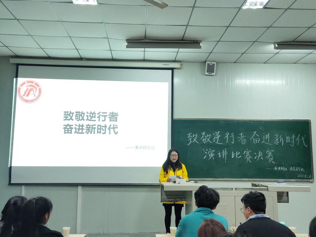 本次决赛分为命题演讲和即兴演讲两个环节。在命题演讲环节中,6位选手以热情饱满的激情,结合自身经历,讲述身边的抗疫故事,学习抗疫英雄事迹,抒发自己的真情实感,向奋战在一线的“最美逆行者”致敬,向所有抗“疫”英雄致敬!经过第一轮精彩的演讲后,六位选手抽取了即兴演讲题目。在此环节中,选手们以生动有力的语言和音乐,让观众深切的感受到新时代的担当与使命。最终,熊洋慧脱颖而出,夺得桂冠。