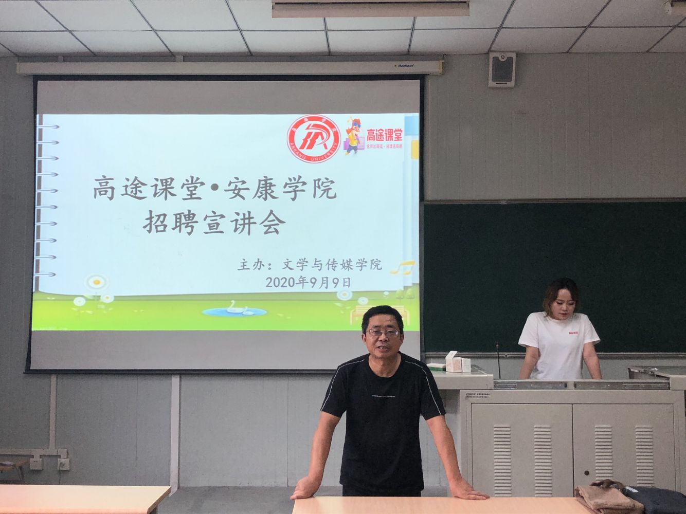 接着,高途课堂招聘负责人向在座的应届毕业生播放了企业文化宣传片,介绍了公司的企业文化、优秀企业理念和企业职位等相关信息,同时解释说明了公司概况、企业自身发展情况以及企业后期发展潜力等问题。然后,高途课堂招聘负责人对公司人才培养和招聘项目、工薪待遇等问题做了一系列的解答与说明。随后与会应届毕业生就入职、工作方向等问题向招聘方提问,负责人一一解答,并给出专业性建议和就业面试的规划。招聘负责人老师表示,公司里有很多伙伴都是来自我校的实习生和毕业生,他们对工作高度负责,热情认真,专业素质和工作能力过硬,公司希望在我校引进更多的优秀伙伴,给公司带来生机与活力。