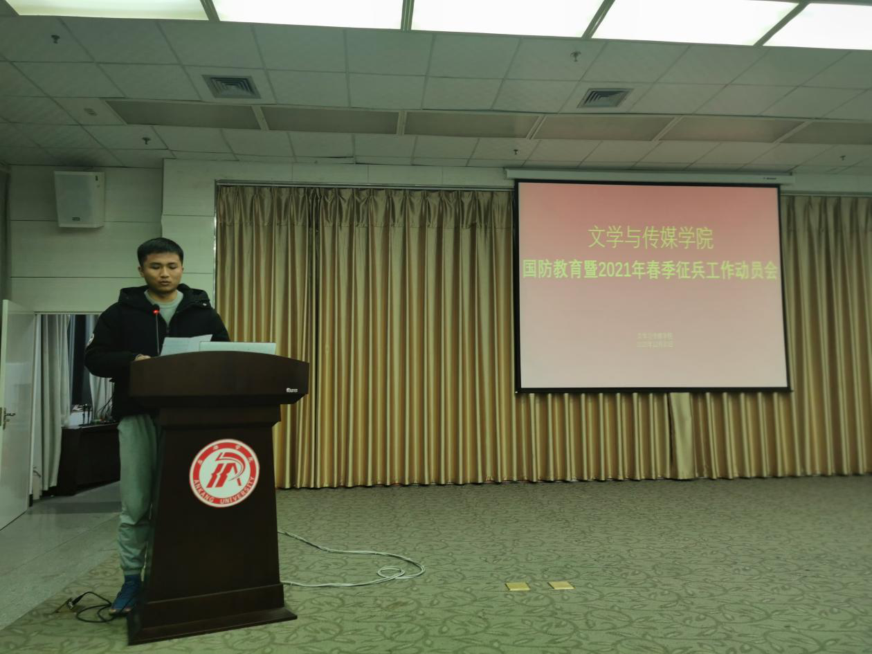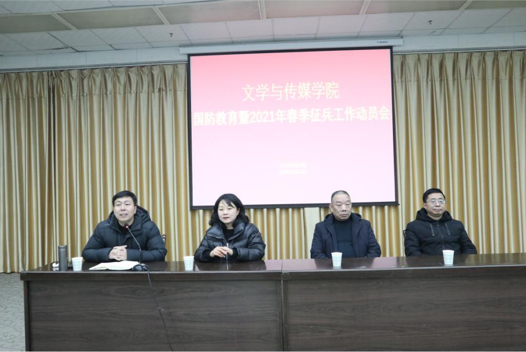 为进一步贯彻落实《新时代爱国主义教育实施纲要》要求,加强新时代大学生爱国主义教育,增强国防意识,激发广大青年大学生积极响应祖国号召参军入伍,保家卫国,2020年12月30日晚19:30,koko体育官网联合学工部在图书馆六楼报告厅召“开国防教育暨2021年春季征兵工作动员会”,学工部王瑞卫,koko体育官网学院党总支副书记杨海蓉、学工办副主任薛涛、辅导员邹棠华老师,退伍大学生代表冯瑞瑞、赵天齐及全院有志参军的200余名同学参加会议。会议由薛涛主持。