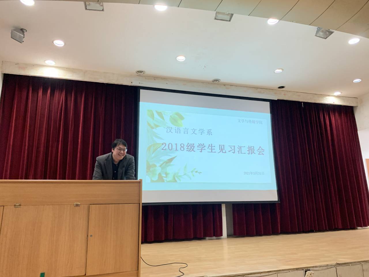 2021年3月31日下午2点30分,汉语言文学专业2018级学生教育见习汇报会在一号教学楼六楼报告厅成功举行。出席本次活动的有副院长朱云、汉语言文学系主任李婷学工办主任薛涛以及试讲指导老师张格瑄、关满春、王丽芳辅导员艾全霞活动由学生杨钰主持张格瑄老师进行了全程指导。