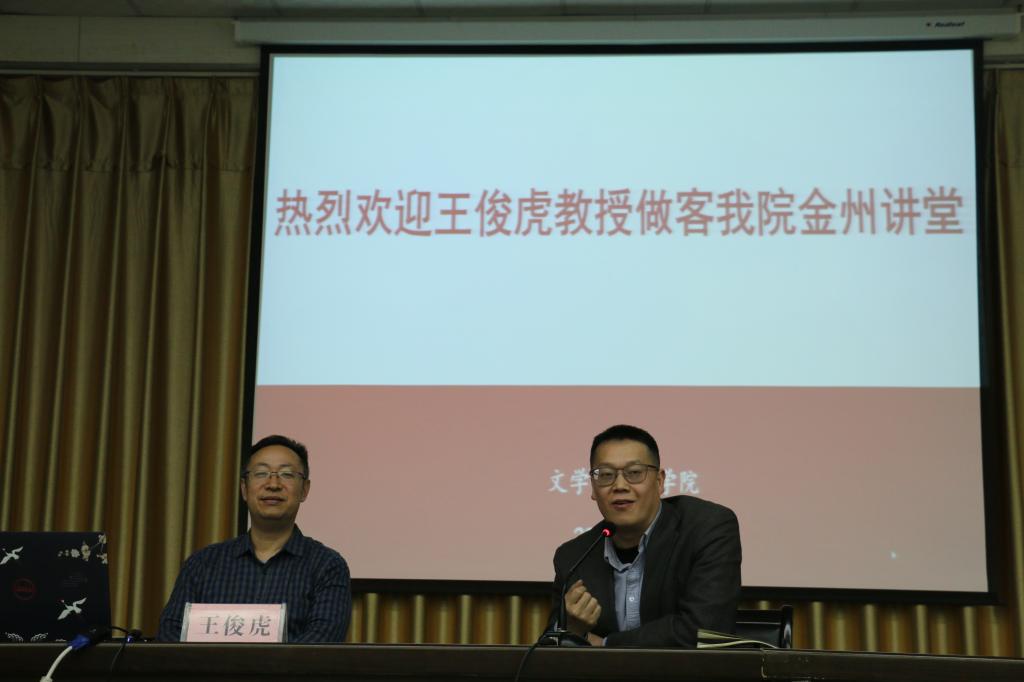王俊虎教授首先阐述了文本细读的含义,然后以老舍《骆驼祥子》中祥子的婚恋观和曹禺《雷雨》中的若干情节解读为例,详细阐述了文本细读的方法以及其与科研创新的关系。整场报告语言风趣幽默、逻辑清晰、引人入胜,使在场学生受益匪浅,现场气氛活跃,掌声不断。