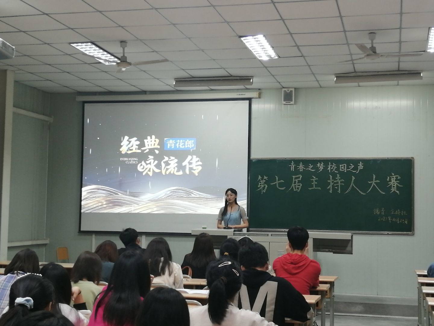 4月23日晚,由koko体育官网播音主持社举办的“青春之梦,校园之声”第七届主持人大赛决赛在江南校区1024教室如期举行。出席本次大赛的评委有koko体育官网邸玲老师、崔瑜老师和社团指导老师黄治强老师。播音主持社全体社员、参赛选手的亲友团以及兴趣观众观看了本次比赛。