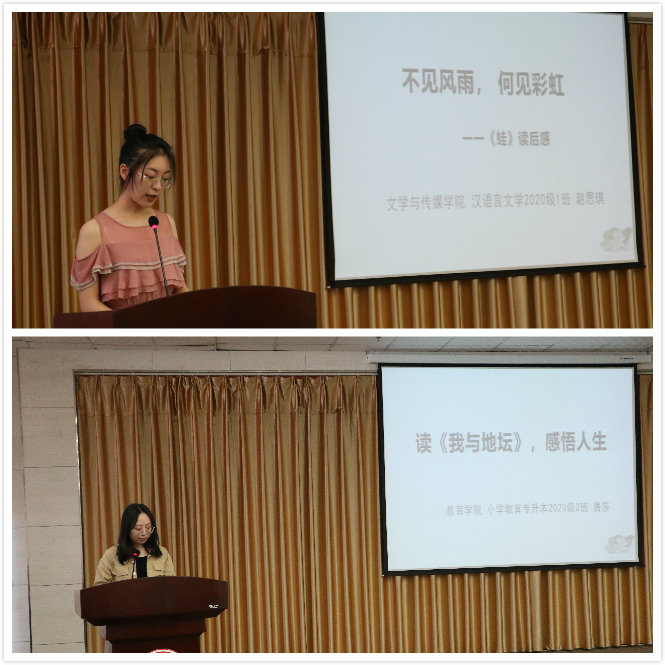 红色的记忆,是永远的丰碑;铿锵的誓言,是心中的颂歌。在中国共产党成立100周年暨第26个“世界读书日”到来之际,为引导学生阅读经典著作,国学读书社于3月22日到4月22日承办第四届“与经典同行”线上征文比赛活动;5月9日在江南校区图书馆六楼报告厅举办第四届“与经典同行”读书心得交流会活动。交流会出席人员有段昌华研究馆员、韩文霞副教授、王丽芳老师、杨丽老师;参加征文比赛获奖的学生、国学读书社社员以及马克思主义学院学生。