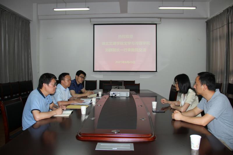 2021年6月24日,湖北文理学院koko体育官网刘群院长一行来koko官网访问交流。koko体育官网院长杨运庚、党总支书记芦伟、副院长朱云在陕南民间文化研究中心会议室与来访人员进行了座谈交流。