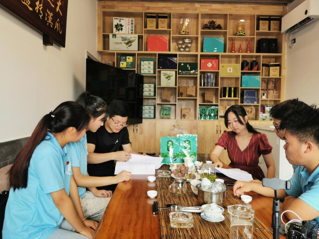 随后,一行人到达陕西省平利绞股蓝研究所,在参观茶山茶园和绞股蓝产品后,队员们与公司董事长进行了座谈交流。陕西女娲神草农业科技有限公司董事长张钊向团队成员介绍了公司发展历程、目前经营状况、产业融合发展的主要途径、绞股蓝产品开发的历史及其优异的成绩、现状以及对于促进当地扶贫脱贫的重大作用,就绞股蓝的品牌打造、营销推广做出展望。他指出:“讲好‘女娲神草’传奇故事,让这藏在大山里的故事输出它的价值,让更多的人受益。”