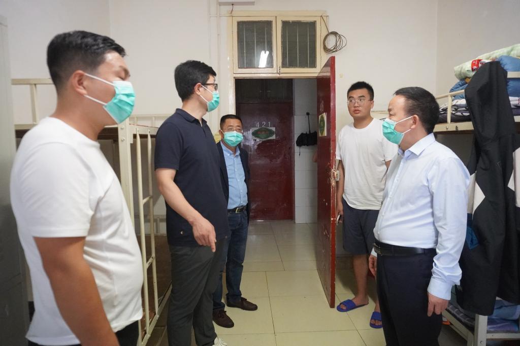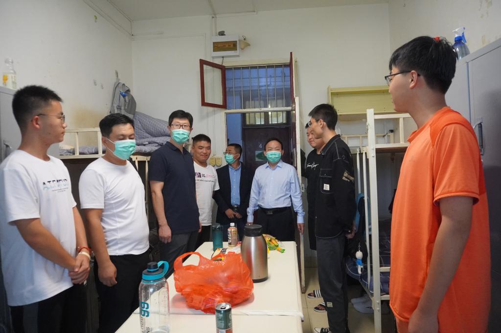 杨运庚、芦伟、邹棠华、薛涛前往男生宿舍了解新生入学情况。“来自哪里”“学校饭菜是否可口”“气候能否适应”“天气多变,注意身体”……每到一个宿舍,学院领导都悉心关怀同学们在学习、生活方面的情况,了解他们的适应情况,并与同学们亲切交流,了解同学们的兴趣爱好,鼓励同学们多去图书馆,在大一阶段夯实基础,珍惜大学时光,学好专业技能,努力提升自我。