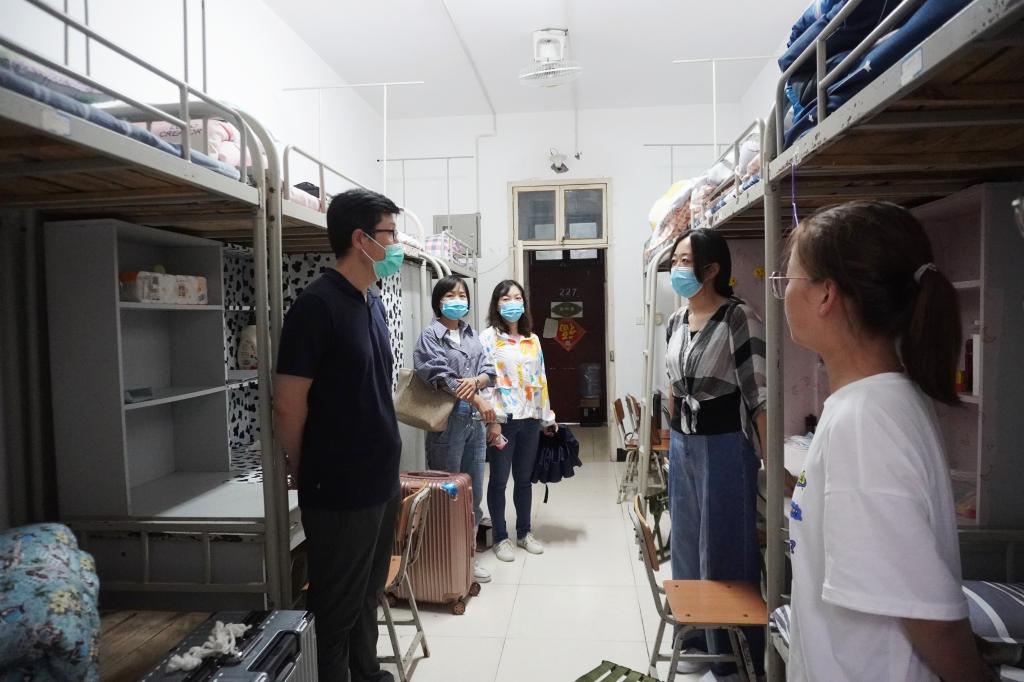 2021年8月28日17:00,大雨如注,koko体育官网院长杨运庚、党总支书记芦伟、副院长李婷带领辅导员和综合办公室主任前往新生宿舍,看望2021级已报到入住的新同学。