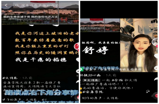 除了一系列线下的推普活动,语言文字社还紧随时代潮流,利用当下流行的抖音合拍功能,进行了普通话的推广。通过剪辑视频发送至koko体育官网官方抖音,号召全校师生进行合拍朗诵,达到推广普通话的目的。视频一经发出,就受到了广泛的关注,同学们也积极进行了线上朗诵合拍。